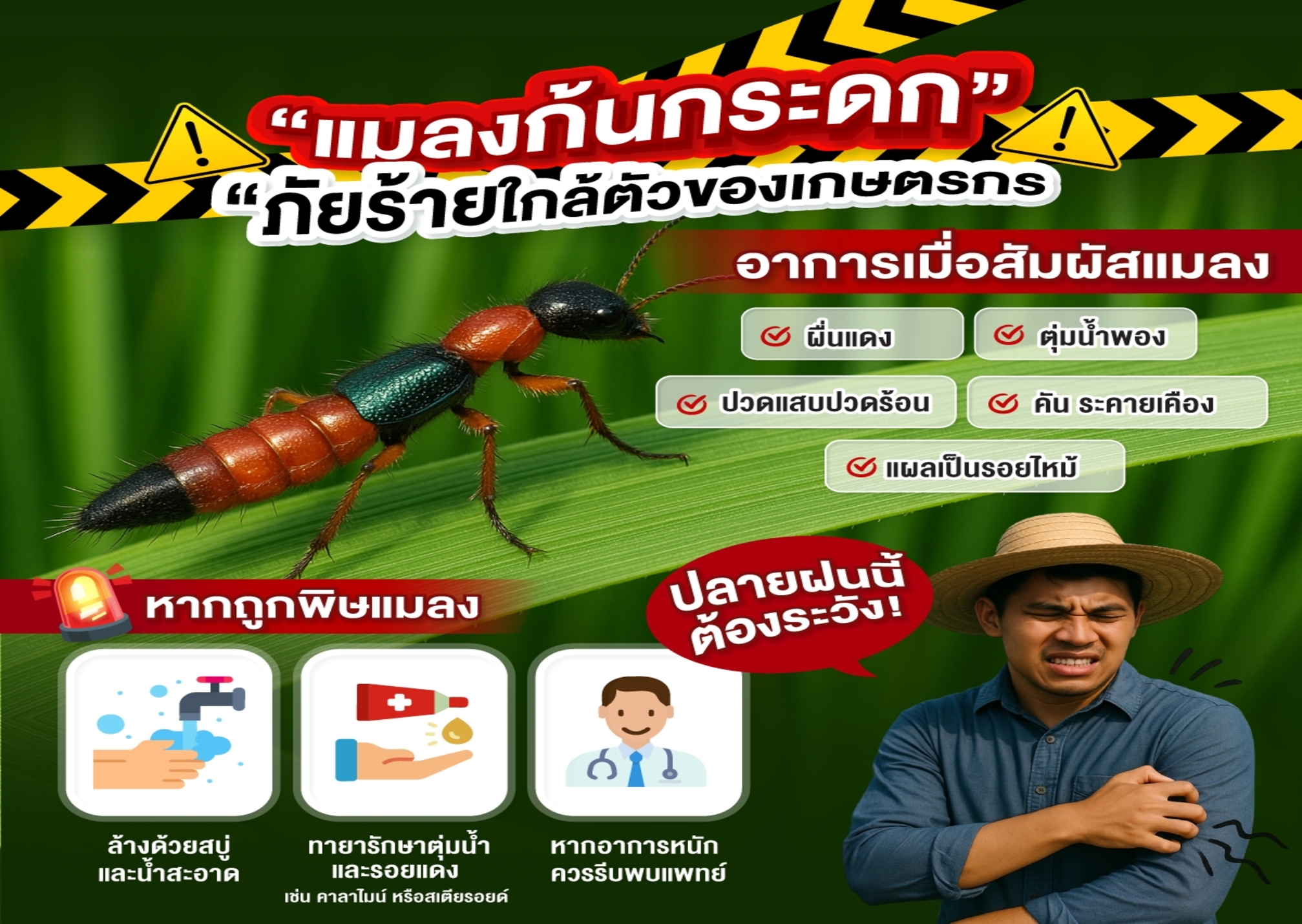 แมลงก้นกระดก ⚠️ ภัยร้ายใกล้ตัวของเกษตรกร ถึงตัวเล็ก แต่พิษแรงมาก! โดยเฉพาะช่วงหน้าฝนและปลายฝน 🌧️
