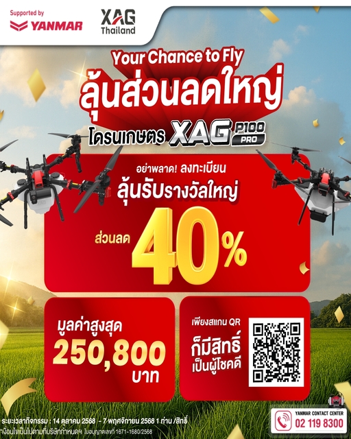 🎉🔥 ยันม่าร์จัดให้! โดรนสุดคุ้มรอผู้โชคดี! แจกส่วนลดใหญ่ โดรนการเกษตร XAG P100 Pro!